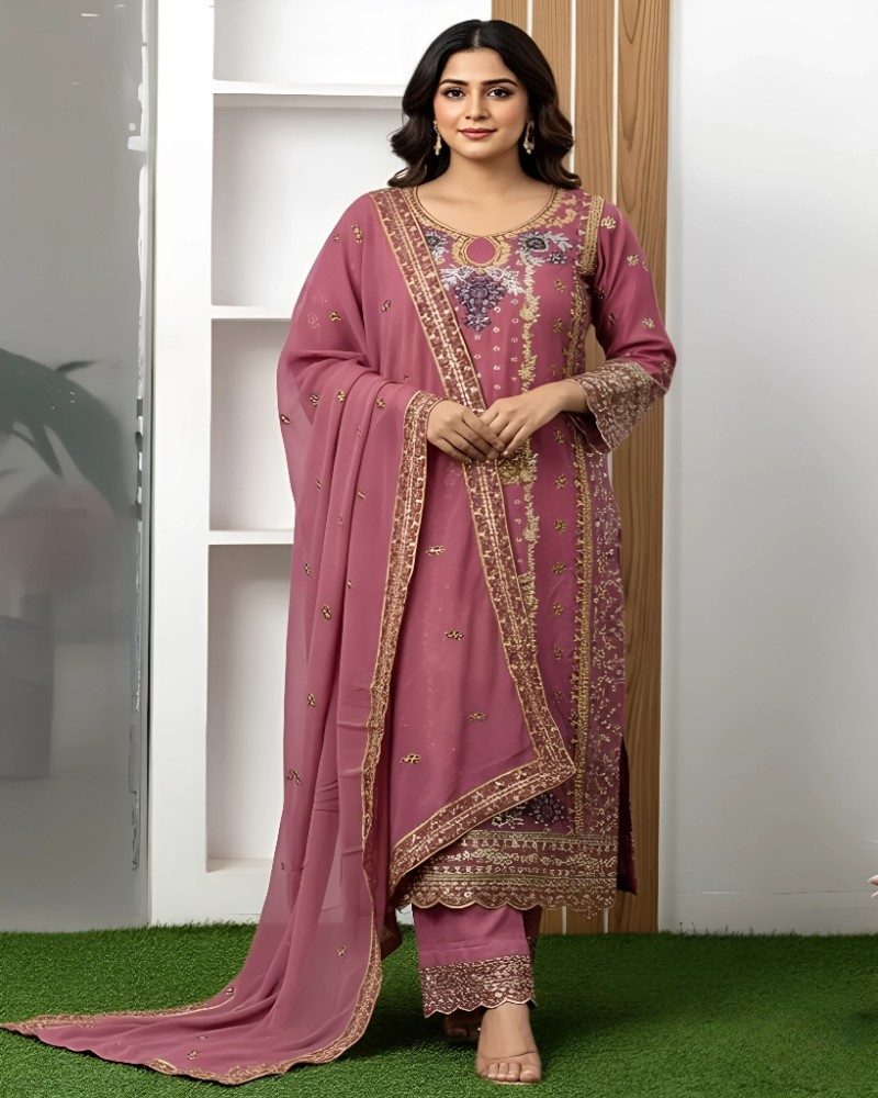 Premium Shiphon Gojet Embroidered Three Piece (Unready) | Party & Eid Collection